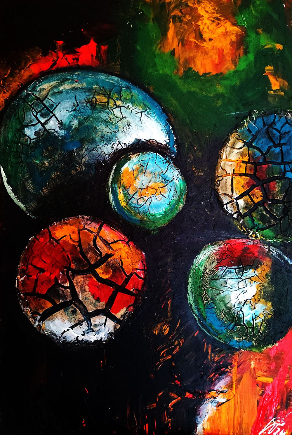 Planetenparade, Acryl, Höhe 60 cm Breite 40 cm