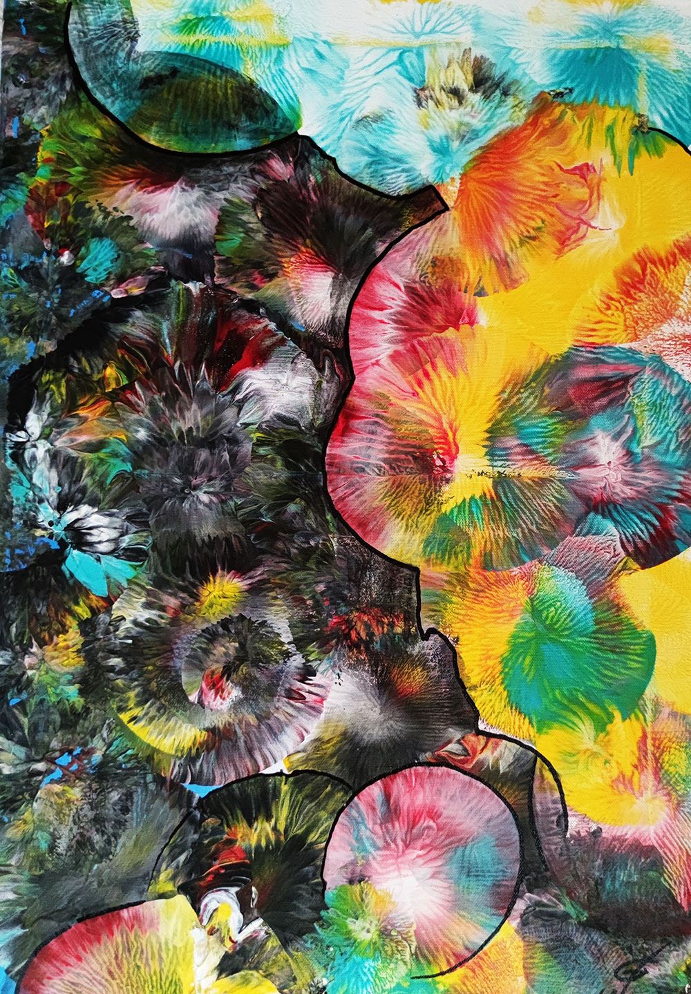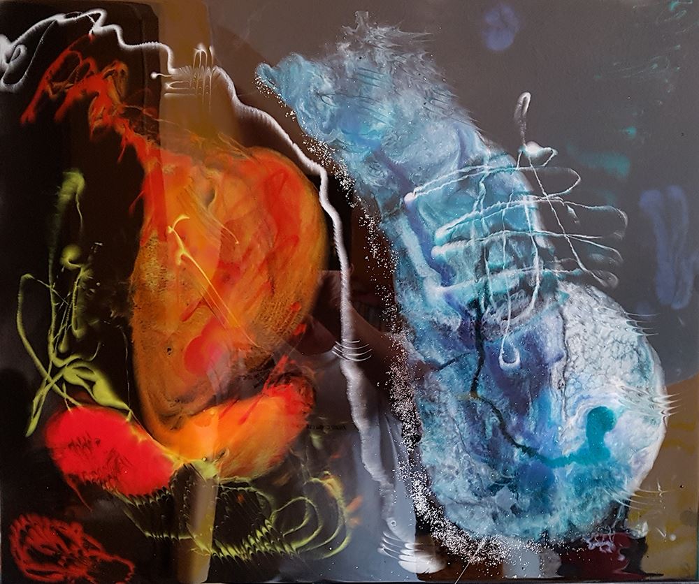 Drunter und Drüber, Resin-Kunst auf Dibond-Platte,Höhe 70 cm Breite 50 cm