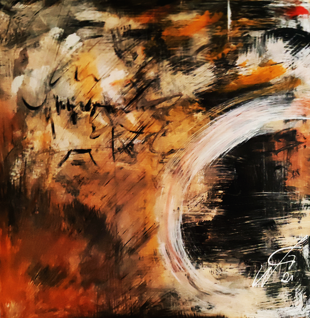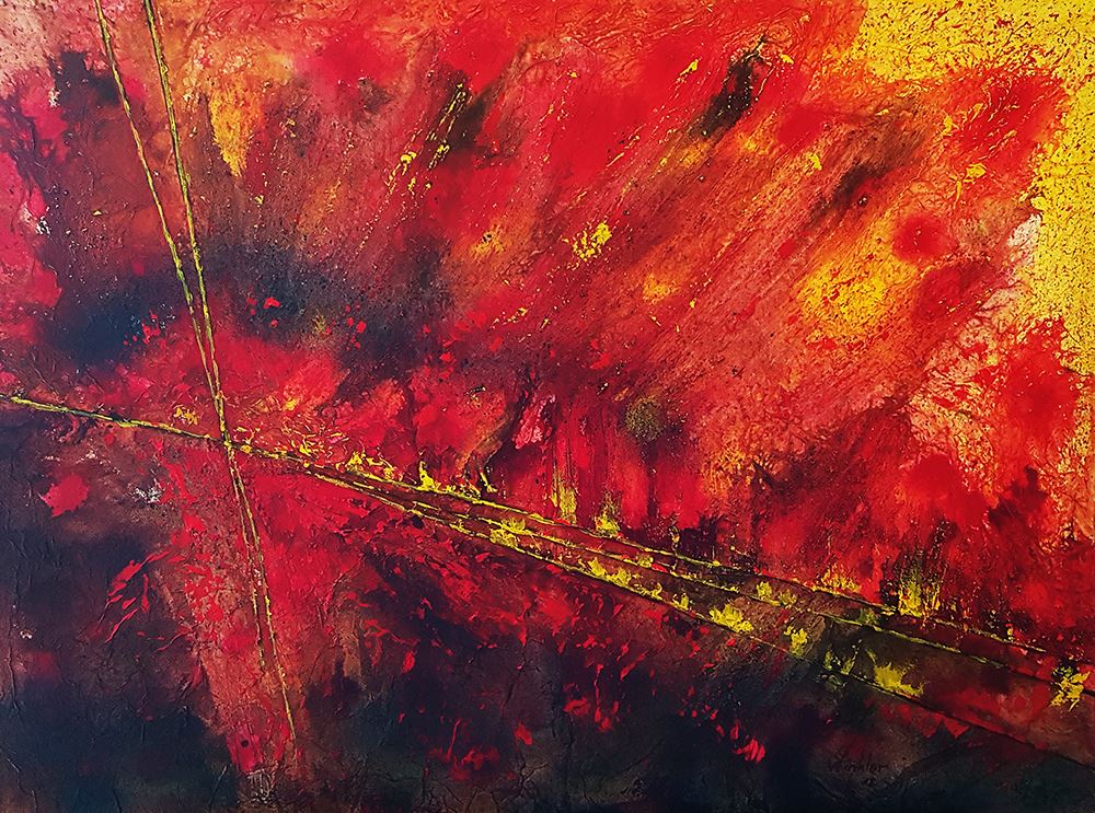 Erde in Flammen, Acryl Mischtechnik, Höhe 60 cm Breite 80 cm