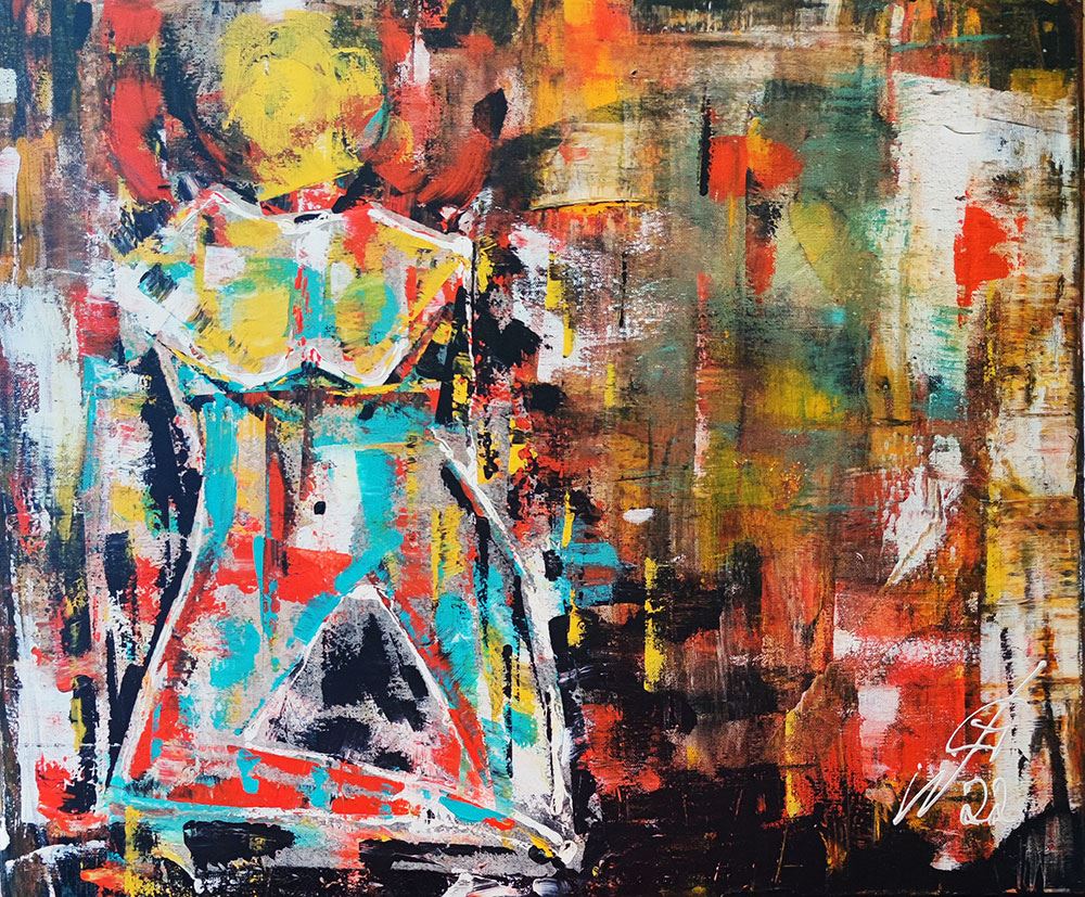 Frau im Frühlingskleid, Acryl, Höhe 60 cm Breite 40 cm