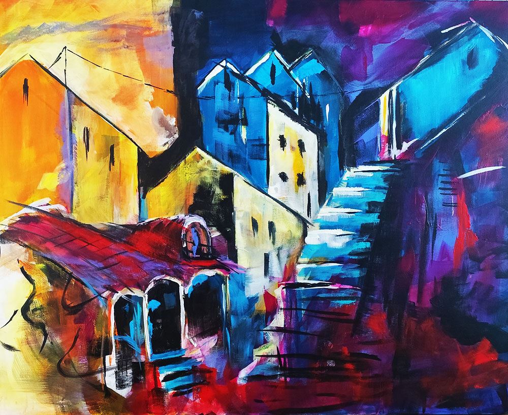 Sity bei Nacht, Acryl, Höhe 80 cm Breite 100 cm Tiefe 4 cm