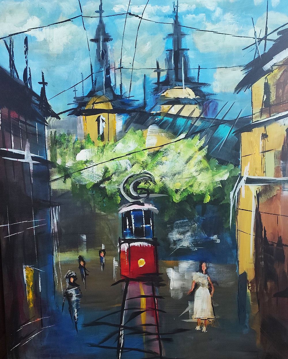 Skytrain, Acryl, 40 Schichten, Höhe 100 cm Breite 80 cm Tiefe 4 cm